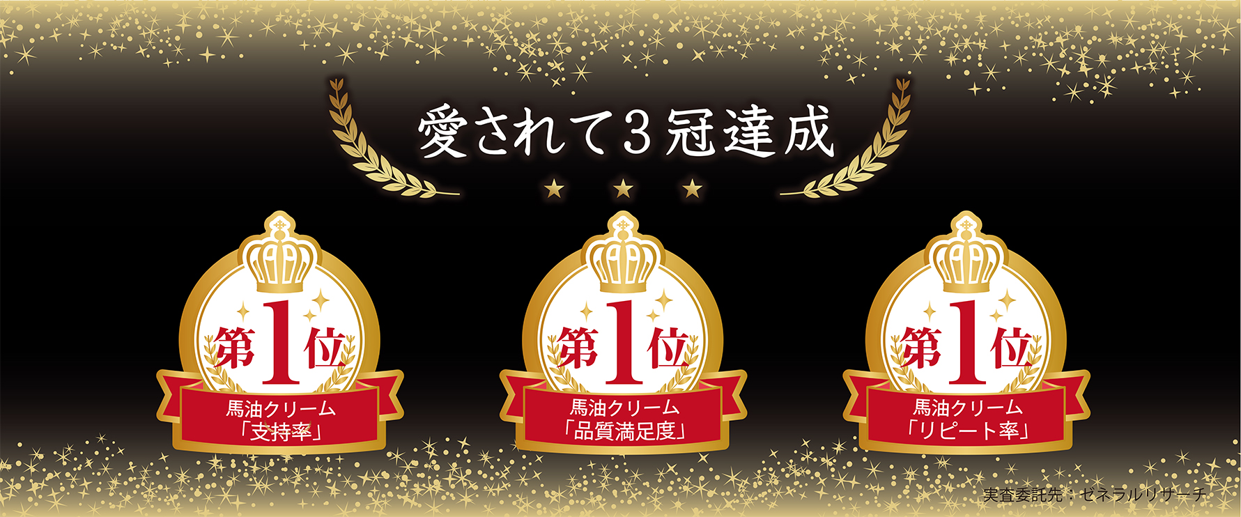 この度、馬油クリーム「支持率 第1位」「品質満足度 第1位」「リピート率 第1位」を頂き、