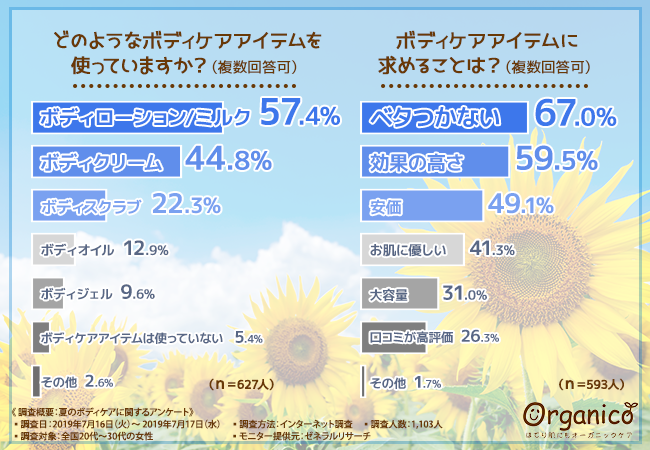 ボディケアアイテムに求めること第1位は「ベタつかない」!