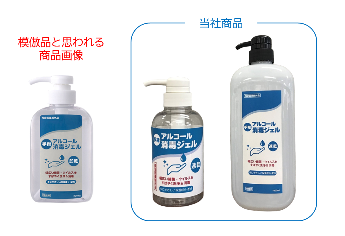 弊社商品の模倣品に関するご注意 お客様各位 平素はジュン・コスメティック商品をご愛用いただき、誠にありがとうございます。 この度、弊社商品「アルコール消毒ジェル300mL」につきまして、模倣品と思われる商品が発売されていることが判明いたしました。 ※現在、該当商品は完売となっております。 模倣品に関しましては不良交換やサポート対応など、弊社での対応は致しかねますので、ご購入の際には十分お気をつけくださいますようお願い申し上げます。 2020年4月17日 株式会社ジュン・コスメティック