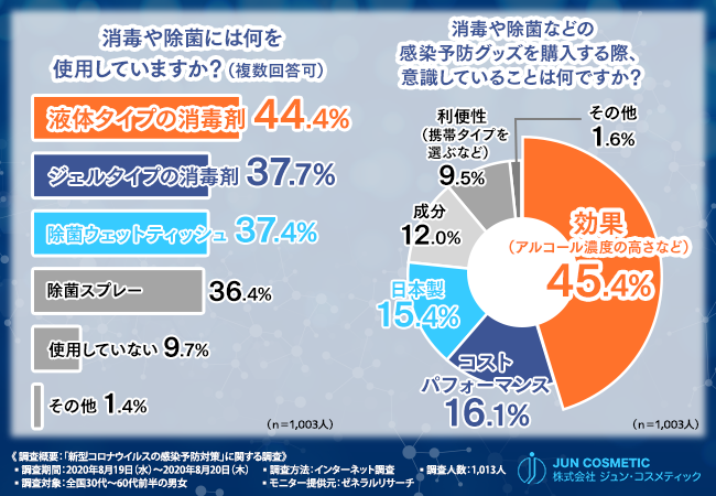 先程の調査で、感染予防グッズを購入する際に、半数近くの方がアルコールの濃度を重視していることが分かりました。